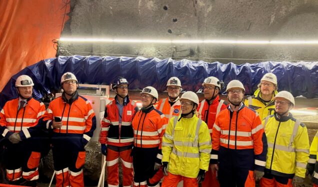 Le 19 décembre, à défaut d’un baptême de tunnelier, un premier tour de roue de coupe a été effectué dans la caverne technique. L’occasion de montrer les avancées du chantier à M. Bursaux, Président de TELT, à M. Bufalini, Directeur général, et à l’équipe construction du maître d’ouvrage.