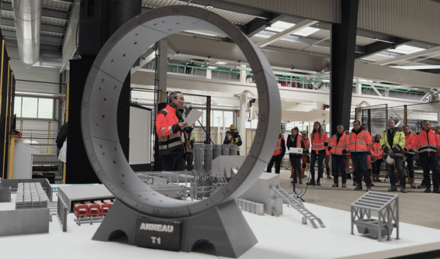 Ce mercredi 24 avril 2024 a eu lieu l’inauguration de l’usine à voussoirs qui produira les 96 000 voussoirs nécessaires au revêtement des 25km de tunnel.
