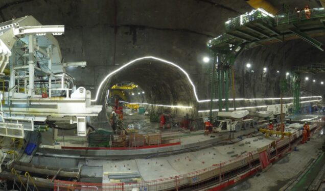 Dans le même temps, les premiers colis de remorques sont arrivés. Après une étape de prémontage en surface, les remorques sont en cours d’assemblage en souterrain dans la section élargie entre la caverne technique et le point triple.
